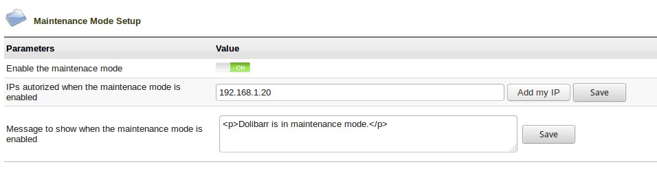 Ce module permet de mettre votre installation en mode maintenance.