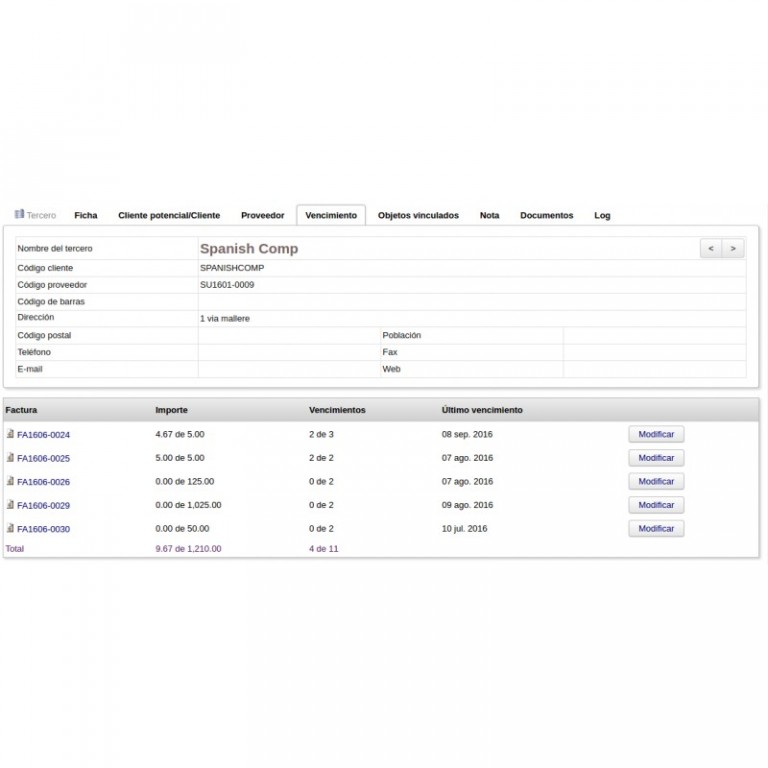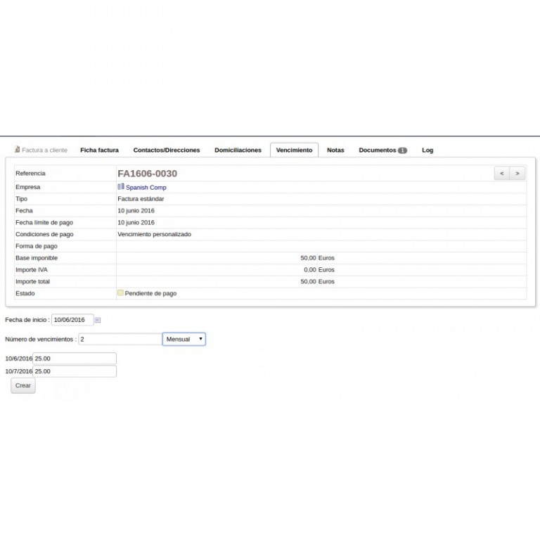 With this module you can create invoices maturities automatically, with the possibility of creating several patterns maturities automatic default for subsequent use since the invoice.