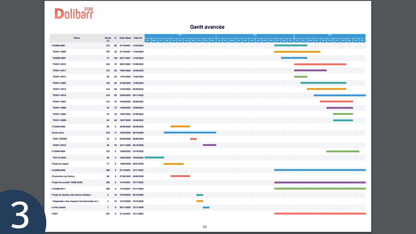 Do you want to be more efficient in the management of your projects? The Advanced Gantt chart for Dolibarr is one of the most effective tools to visualize the progress of your tasks, know the deadlines for each key step and manage the interactions between your different projects and tasks.