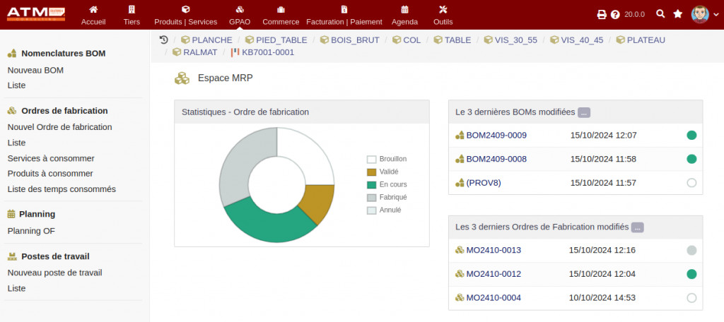 The Manufacturing+ module brings additional functionalities to the standard Manufacturing modules : Bills of material (BOM), Manufacturing Orders (MO), Batch/series numbers and Products/Services.