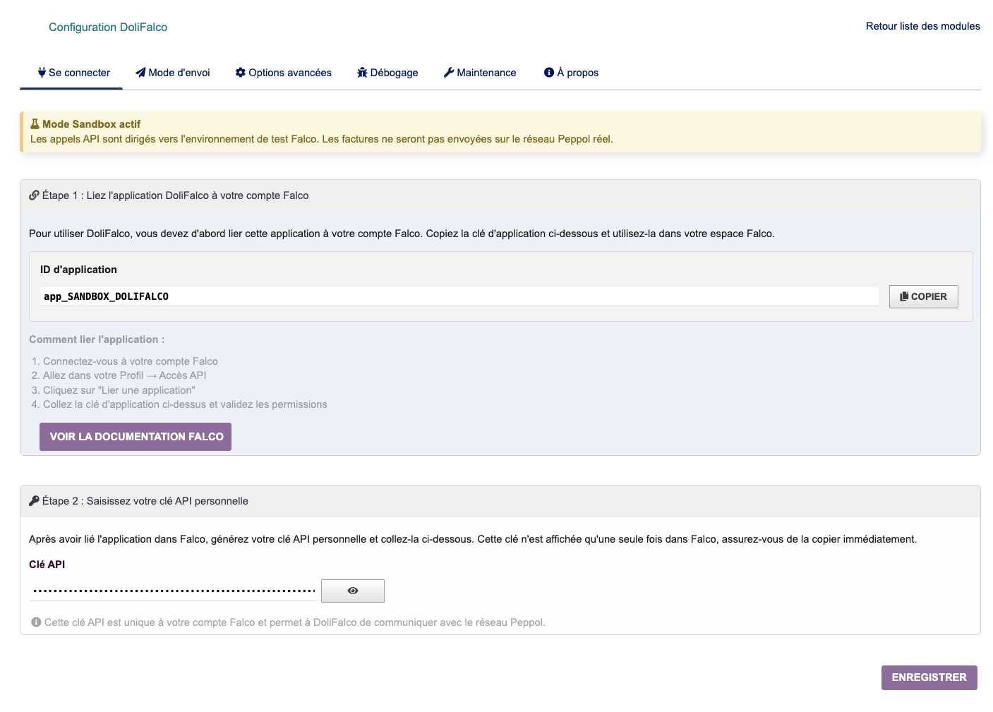 DoliFalco connecte votre Dolibarr à l’API Falco pour envoyer vos factures sur le réseau européen Peppol. Le module utilise le mode PDF + Métadonnées : vous envoyez votre facture, Falco génère automatiquement le fichier UBL conforme aux normes Peppol BIS 3.0.