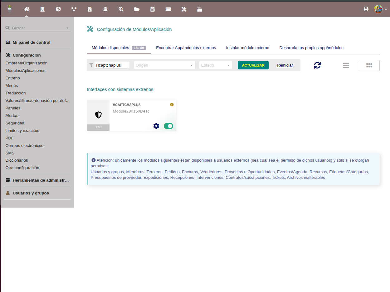 hCaptcha provider for Dolibarr v21+ – Secure alternative CAPTCHA fully integrated with the native security system. Requires a manual provider file copy for Dolibarr to detect the module.