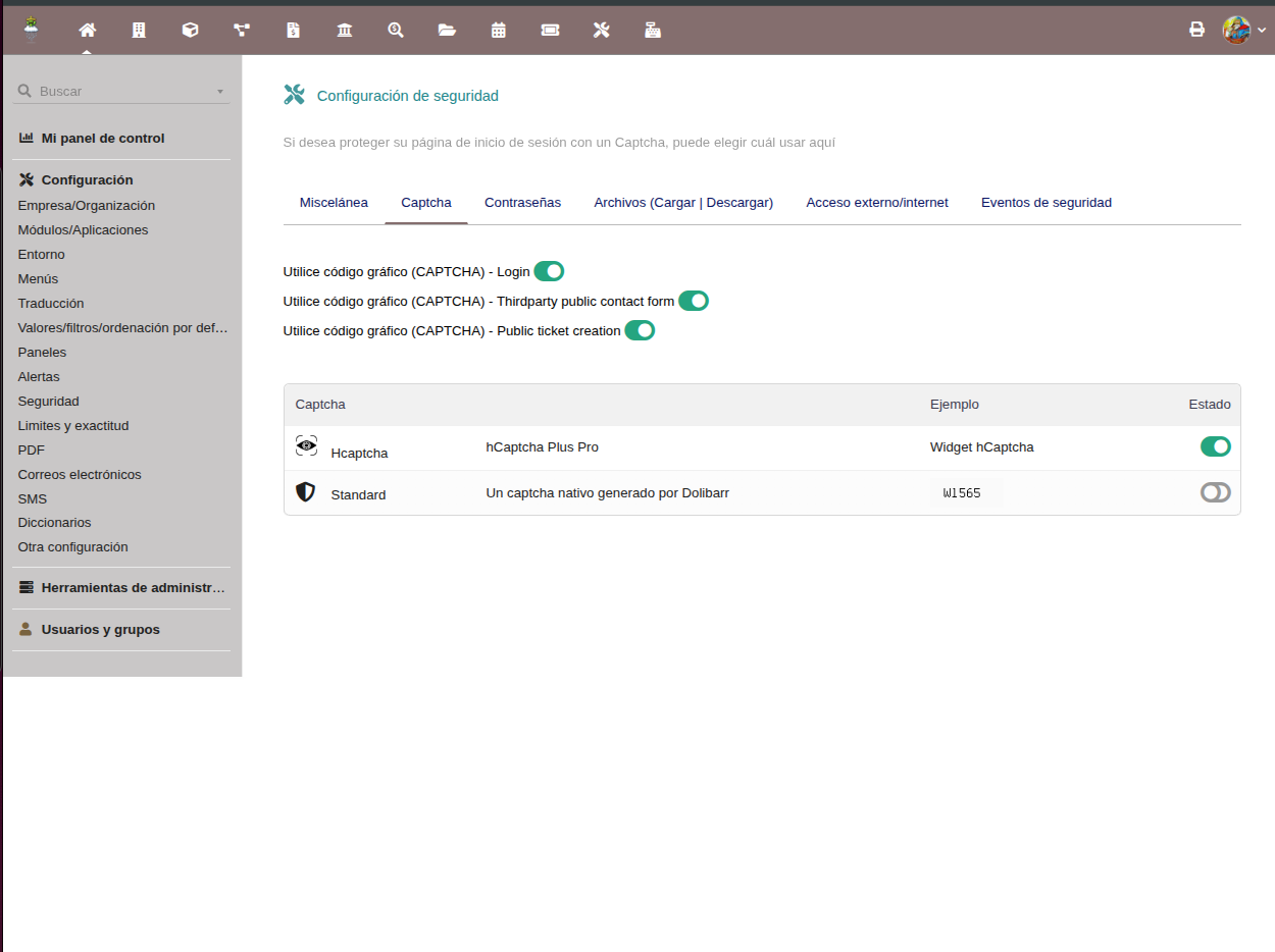 Native integration with Dolibarr CAPTCHA system
