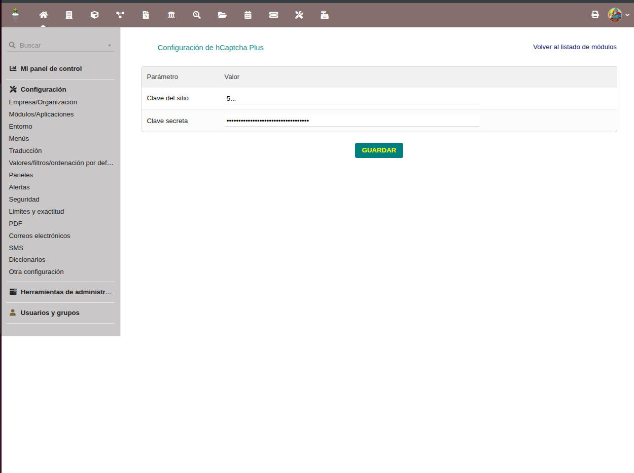 The module integrates as an alternative CAPTCHA provider within Dolibarr’s security framework.