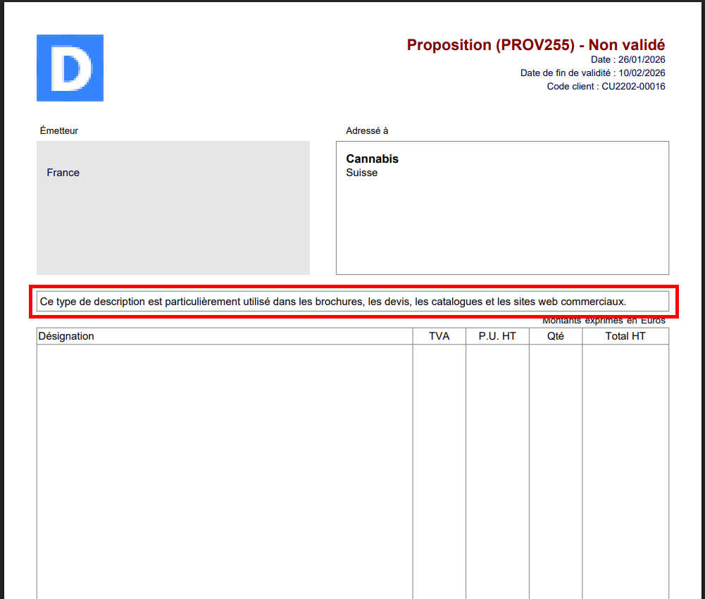 ✔ Includere note visibili a clienti o partner su preventivi, fatture o spedizioni