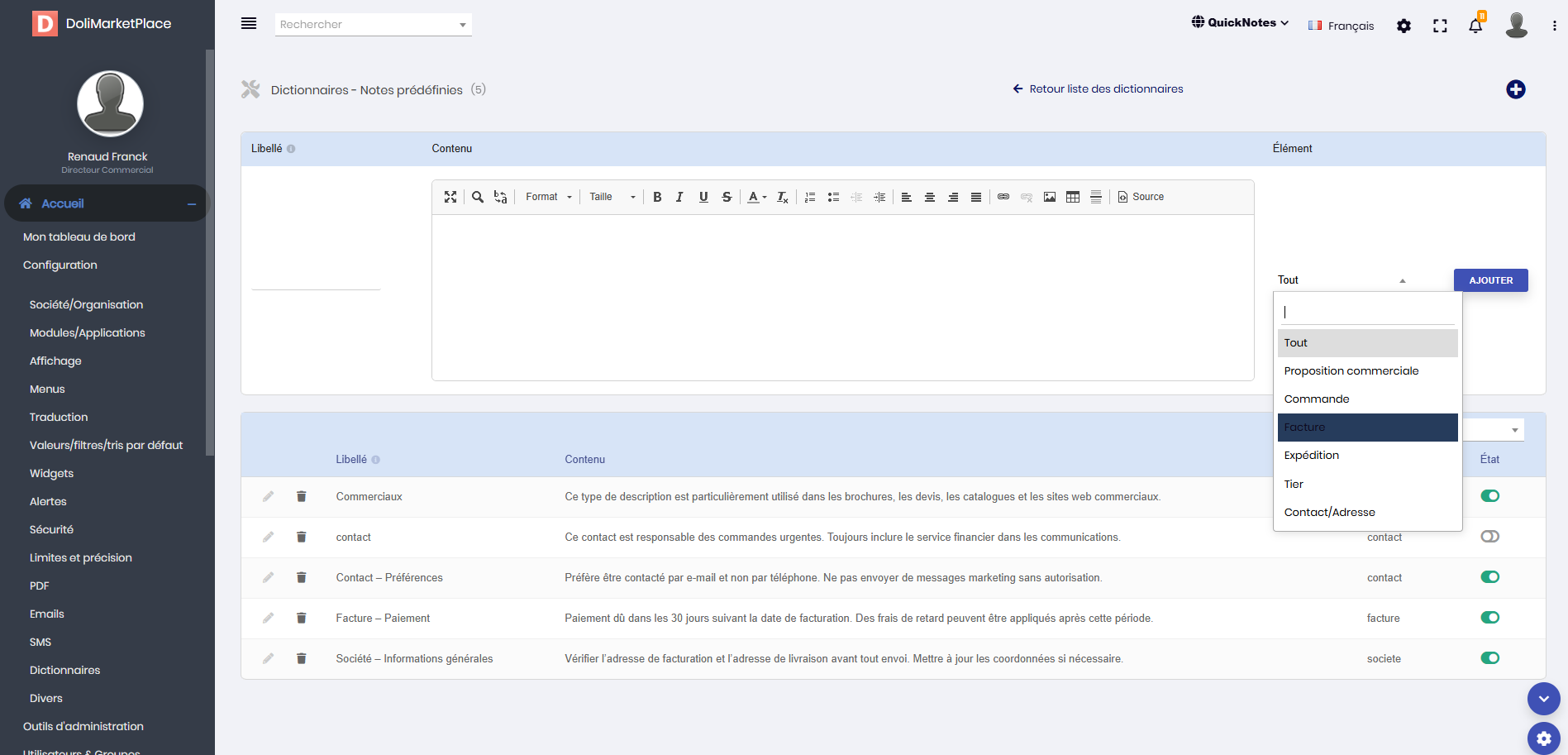 Con Quick Notes, risparmia tempo, migliora la coerenza delle tue informazioni e assicurati un monitoraggio efficiente dei tuoi documenti e terzi in Dolibarr.