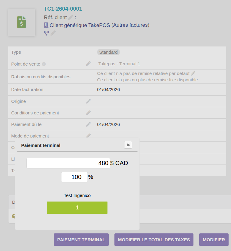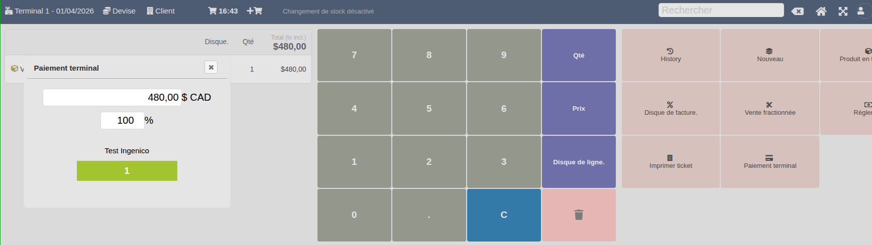 This module add communication to Ingenico Desk/5000 Payment Terminal using the supported protocol in Québec and Canada.