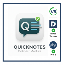 Il modulo Quick Notes per Dolibarr consente di aggiungere automaticamente note pubbliche e private ai vostri documenti e record commerciali. Ogni società, contatto, preventivo, ordine, fattura o spedizione può ora avere due campi di note predefinite, facilmente accessibili e riutilizzabili in qualsiasi momento.