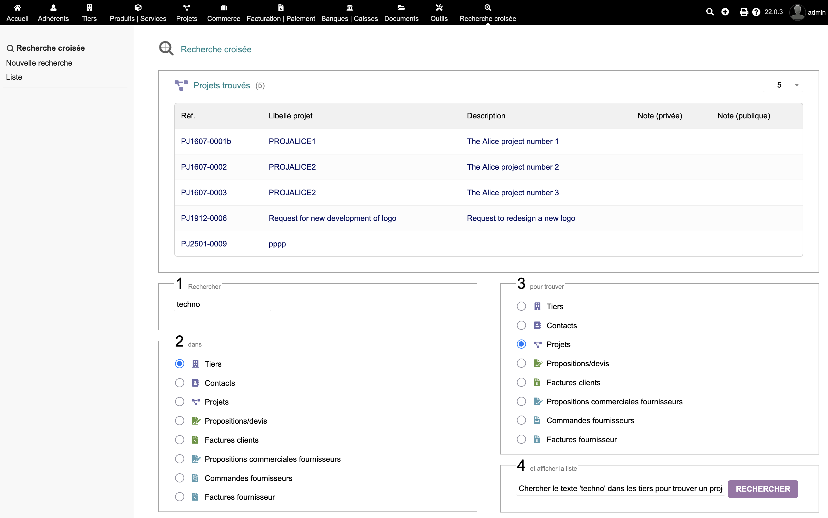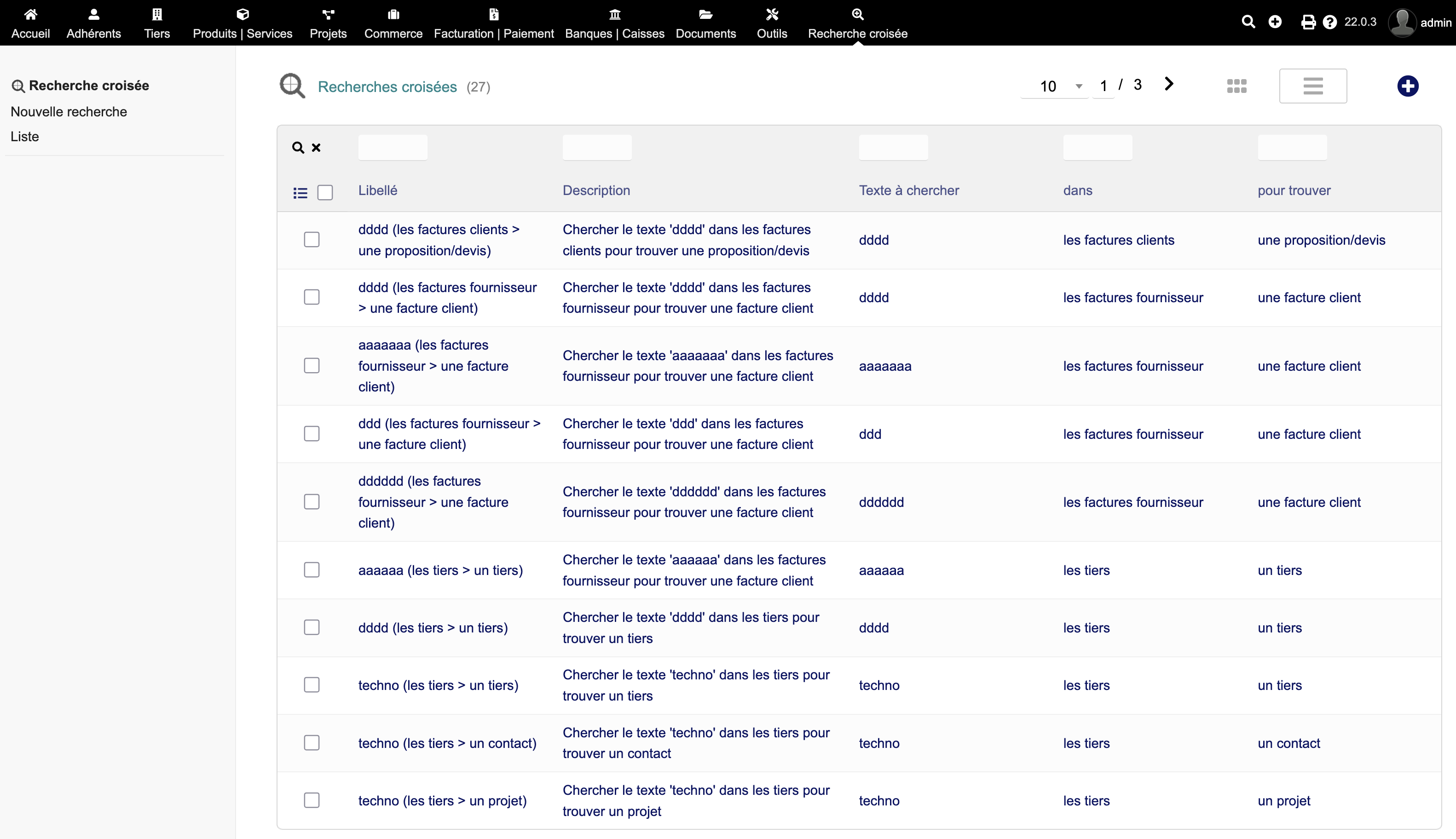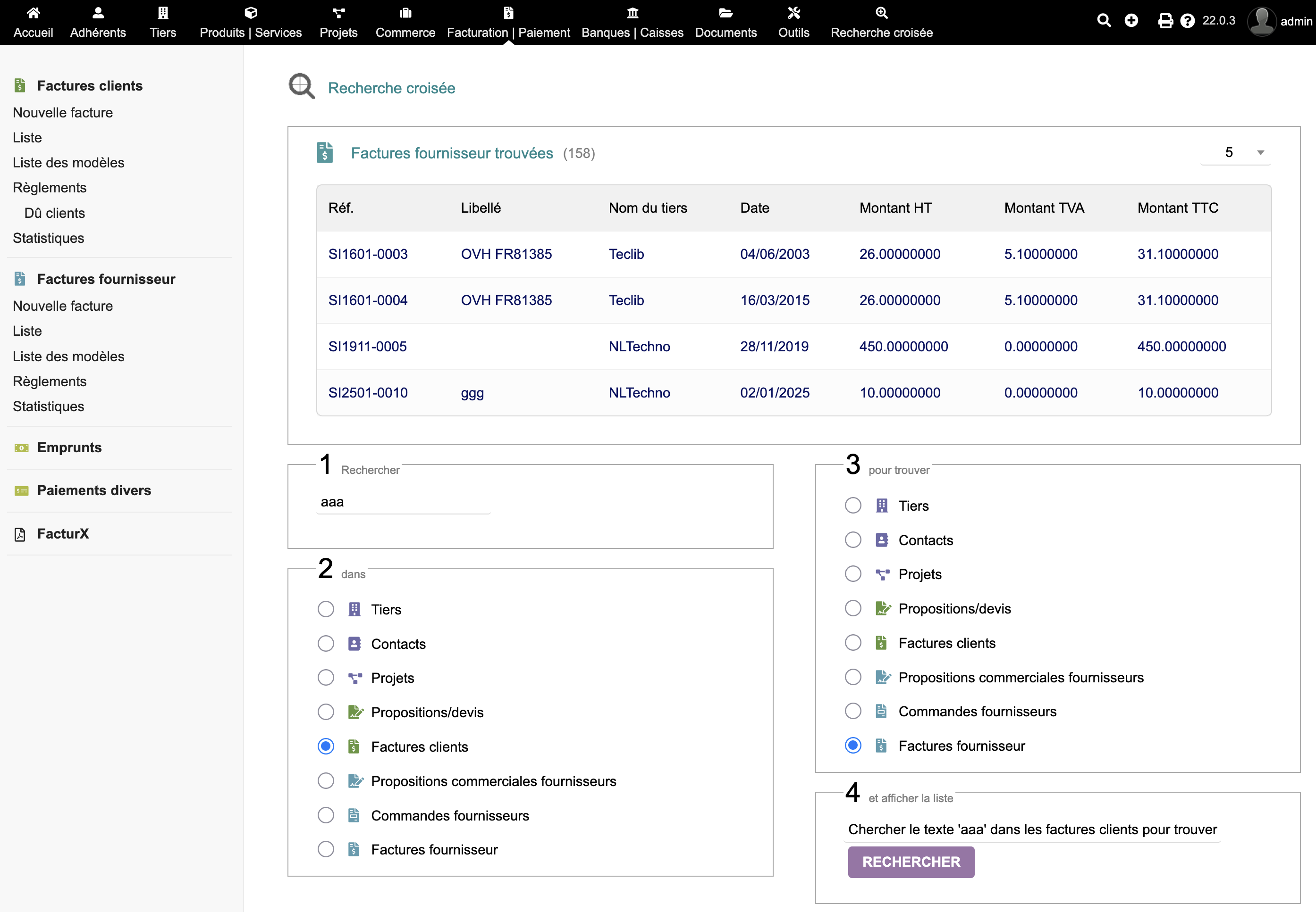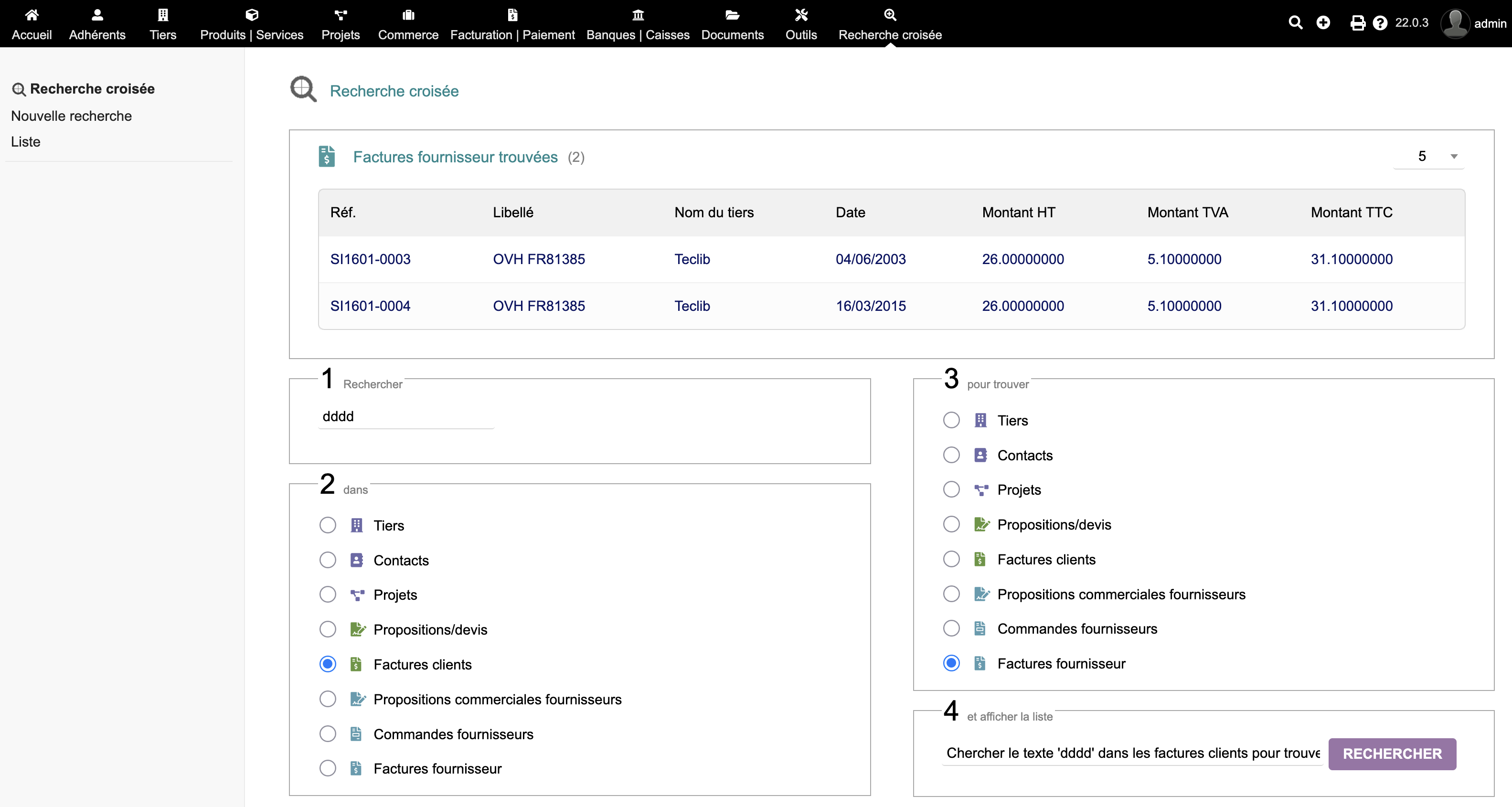 Find one element from another. IMPORTANTE: Accesso illimitato agli aggiornamenti. Assistenza tecnica: dolibarr@joliciel.fr Allows you to find an element (third party, contact, invoice...) from a search in another element (third party, contact, invoice...). Technical support: dolibarr@joliciel.fr