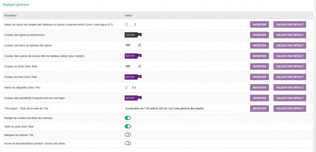 DPersoPlus is a module for formatting Dolibarr PDF documents without modifying the core. With this module, you can have documents with color formatting, rounded edges, use of logos in SVG format, compatibility with the Subtotal (ATM & Iouston) module, general terms and conditions of sale and purchase...