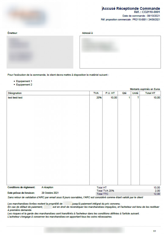 The ARCcommande module allows you to add a print template to the sales order. This edition is an acknowledgment of receipt of a sales order.