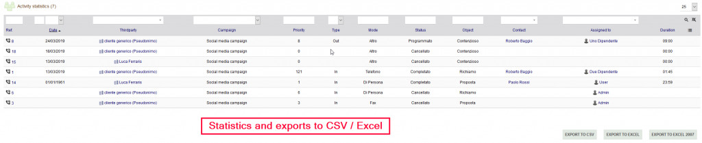 The "Advanced CRM" module inserts a series of features typical of a CRM program into Dolibarr. Other characteristics: