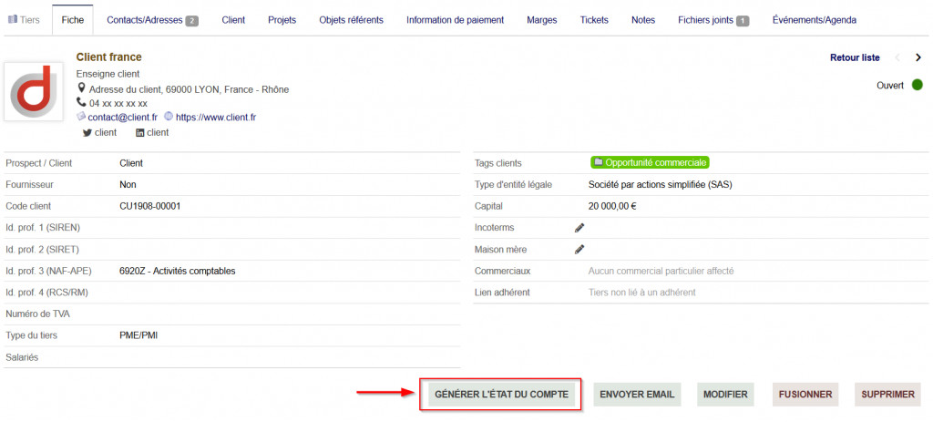 Extrait compte client permet la création d'un extrait de compte client/fournisseur au format PDF/CSV sur des dates définies.