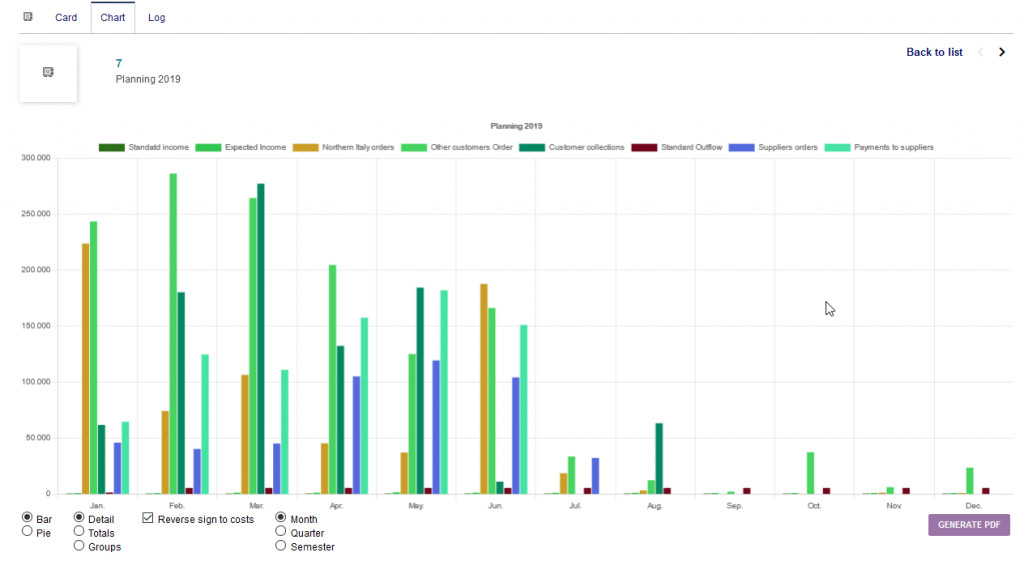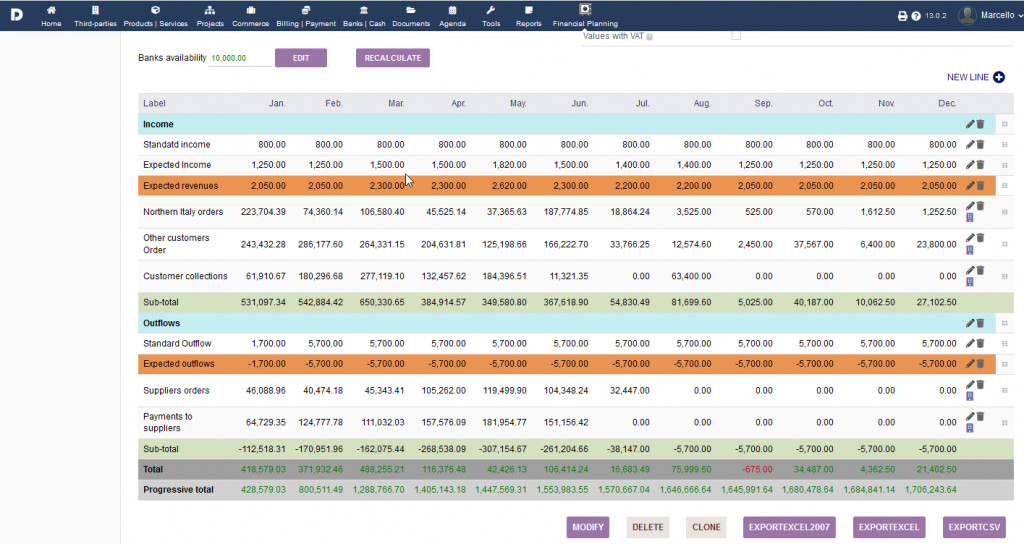 The "Financial Planning" module allows you to forecast the liquidity situation of your company in the short, medium and long term.