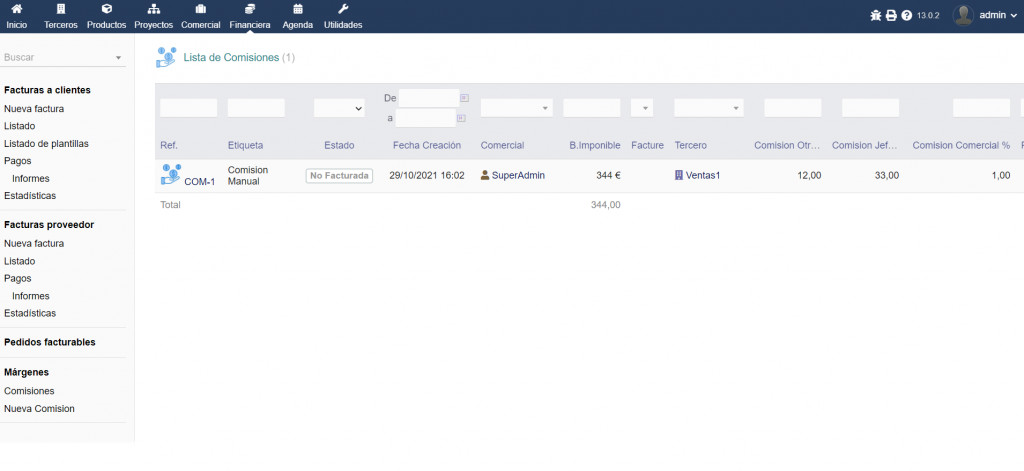 Commissions to Commercials according to the percentages allocated to each one and the sales. Commissions can be billed to a third party