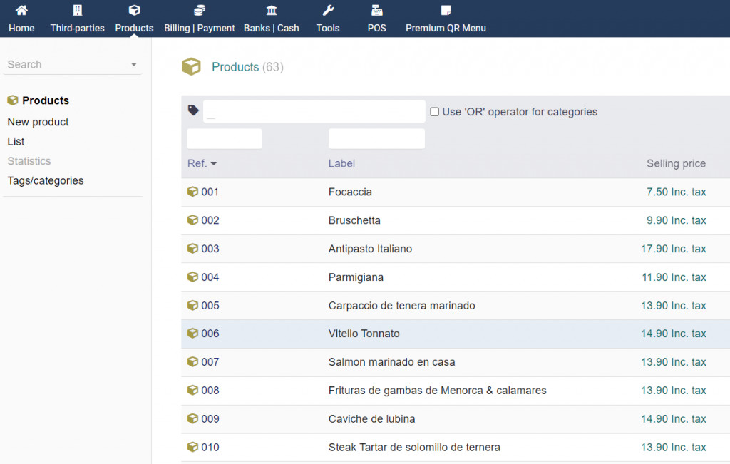 Carta QR web para bares y restaurantes con los artículos de Dolibarr. También se puede usar como página web de un bar o restaurante.