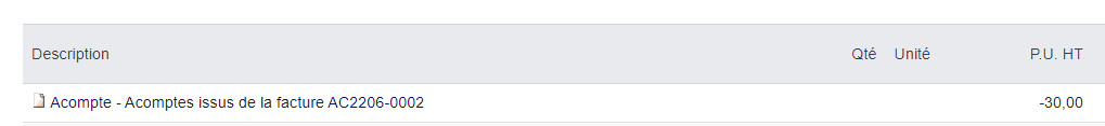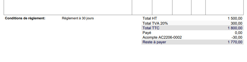 Do not choose to include your deposit in your invoice lines or display it at the bottom of the page! This module adds an invoice template where the account is displayed in addition to the balance to be paid. Your customers will have a better understanding of your invoices.