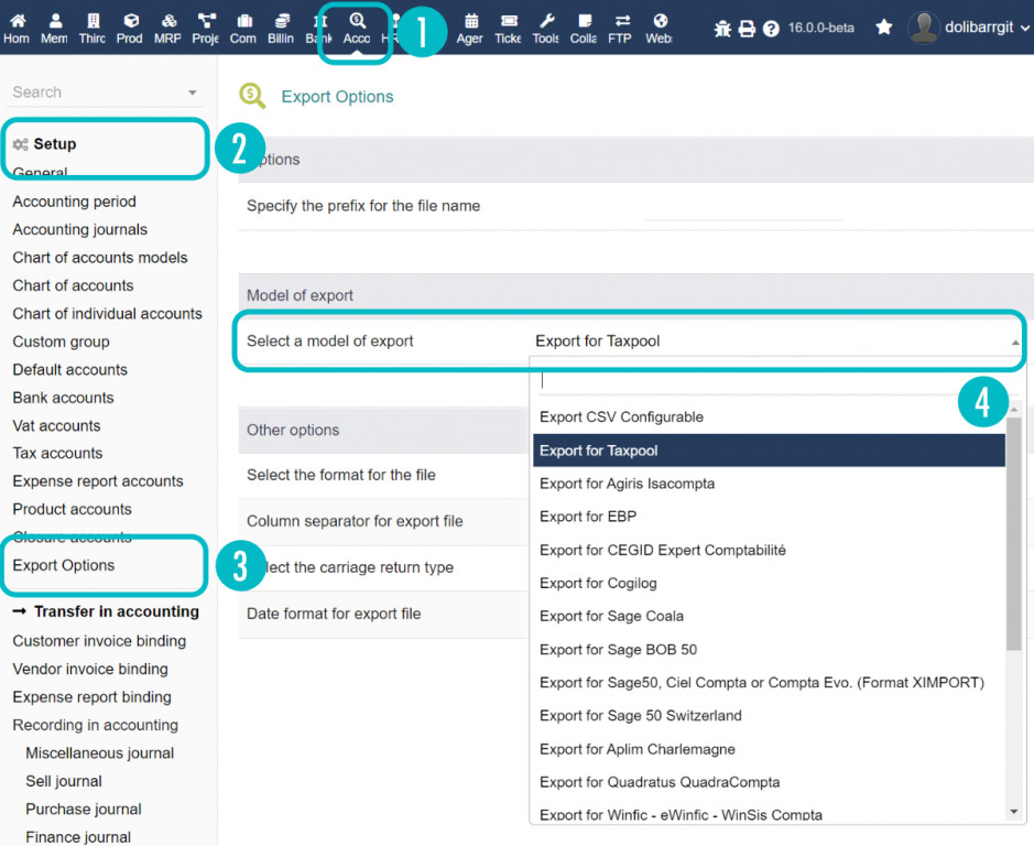 This module provides additional target formats for the export of the accounting ledger. In the current version, the accounting software Taxpool can be chosen as an additional target. You can import the data into Taxpool by choosing the exported file as an input file from within Taxpool. Column headers are chosen in a way that an auto-assignment can take place.