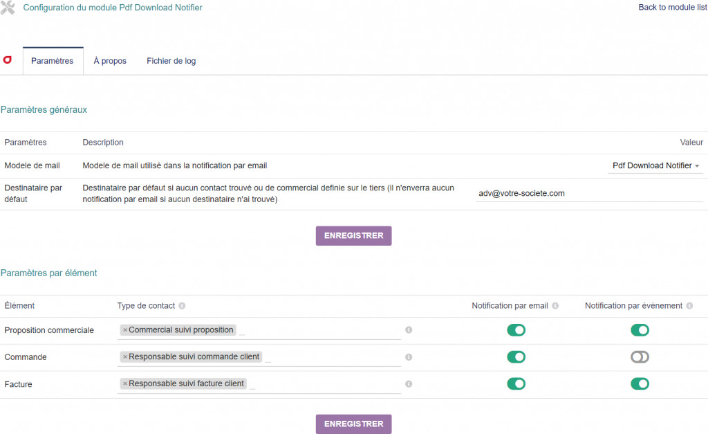 The Easya Solutions / Dolibarr add-on module PDF DOWNLOAD NOTIFIER adds to Dolibarr the ability to send a confirmation notification of download sales proposals, orders and customer invoices by e-mail or by creating an event in the creation of an event in the calendar . PDF DOWNLOAD NOTIFIER is compatible with the Multi-company module