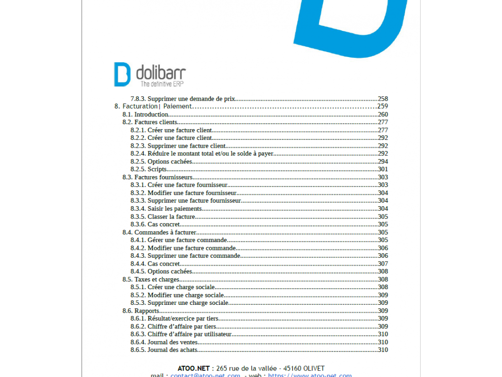WARNING: This is not a final version, this guide (pdf format, 410 pages) is constantly updated, therefore we recommend that you wear your attention to the new versions that follow the evolution of Dolibarr and will be available to users of dolistore