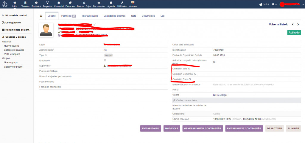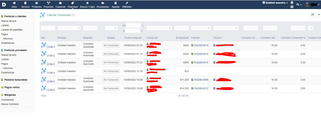 Comsiones a Comerciales segun los porcientos destinados a cada uno y las ventas. Pueden facturar a un tercero las comisiones