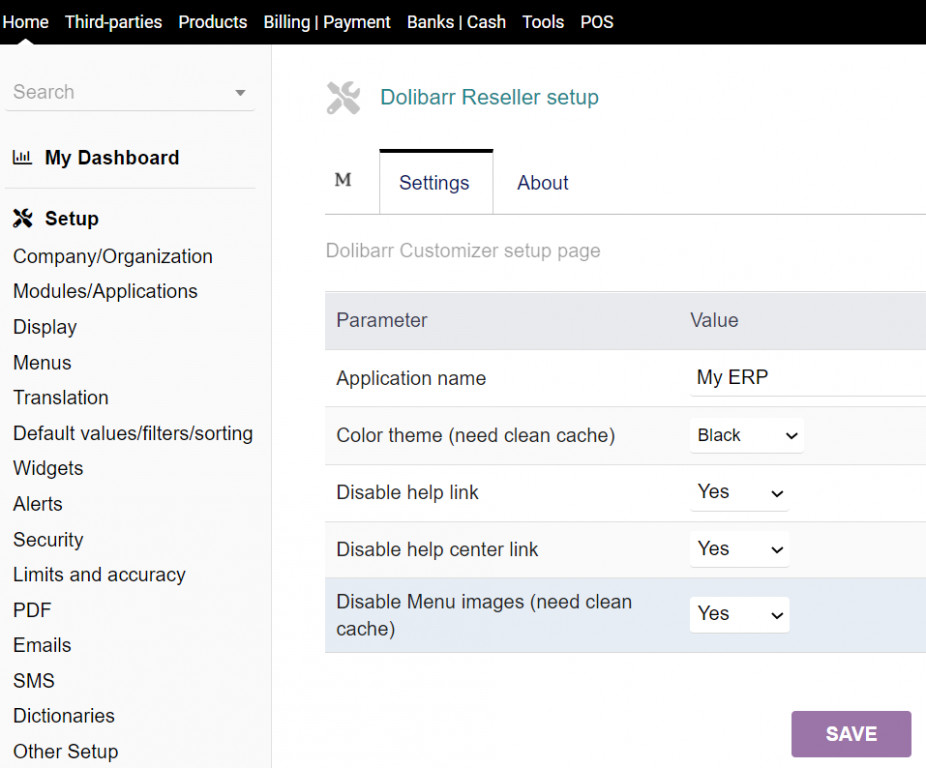 It makes it easy for you to configure a Dolibarr to resell, such as changing the name of the program, hiding help, etc...