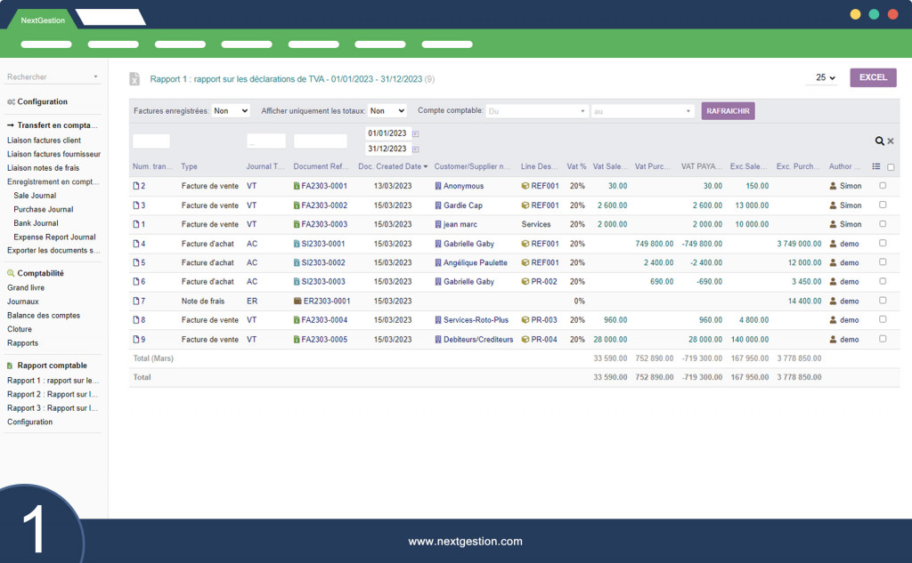1- Il rapporto 1 è un rapporto sulle dichiarazioni IVA, che copre un periodo specifico dal 1 gennaio 2023 al 31 dicembre 2023. Questo rapporto aiuta a verificare la conformità dell'azienda alle normative fiscali e può aiutare a evitare multe o sanzioni.