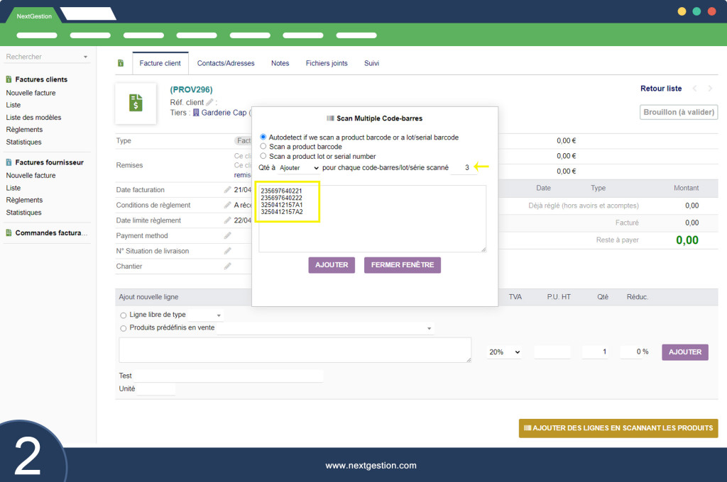 DÉMONSTRATION SCAN MULTIPLE CODE-BARRESdemo/demo If you order our module you benefit from: