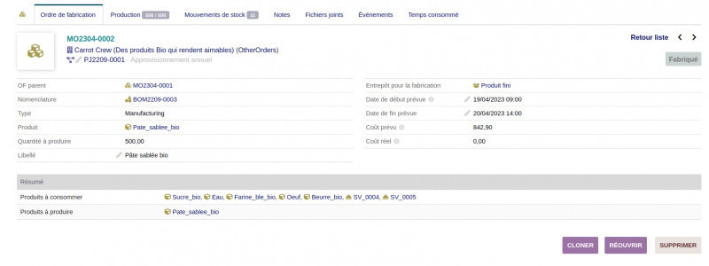 - Créer un process de fabrication sur vos nomenclatures