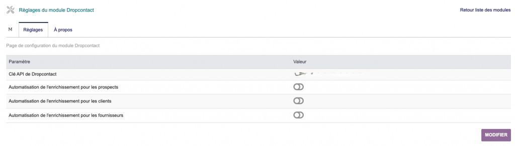 Once active, in the module configuration, you can decide to enable the automation of this enrichment for Prospects, Customers, or Suppliers.