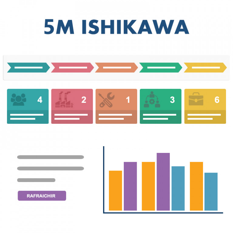 Después de recopilar la lista de cada colaborador, debe verificar si la lista completa se clasifica en las categorías correctas. Hemos combinado las 5 M (Mano de obra, Métodos, Material, Máquinas, Medio Ambiente) con el método de los 5 porqués, uno puede profundizar más para comprender por qué ocurre realmente un problema.