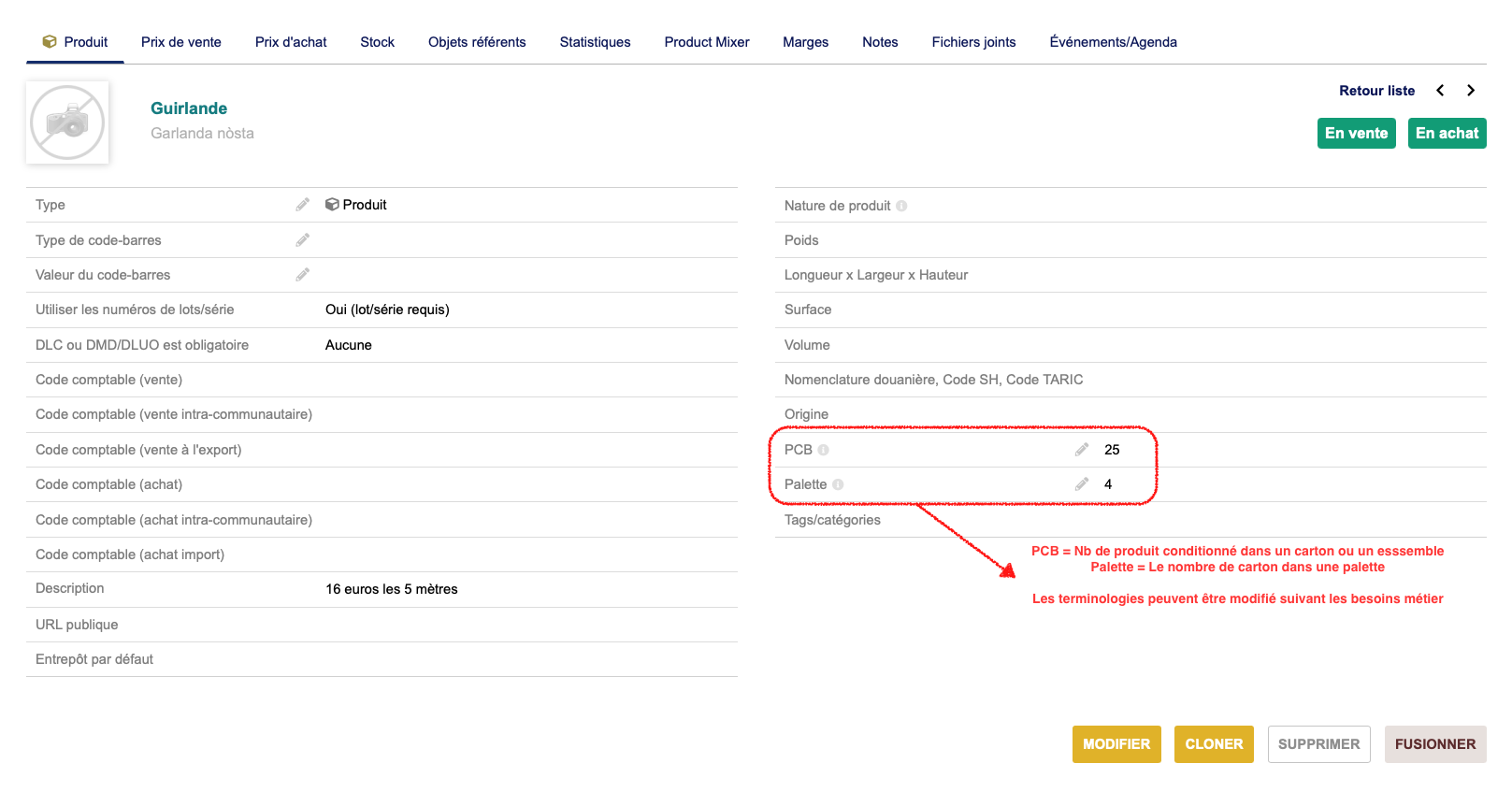 Cette flexibilité s’étend à la gestion des codes logistiques (UC, CO) et des niveaux de conditionnement — notamment le PCB (nombre de conditionnements par carton/boîte) et le PCC (nombre de cartons par palette) — permettant d’utiliser un même code ENA13 et de réduire les complexités liées aux variations de conditionnement.