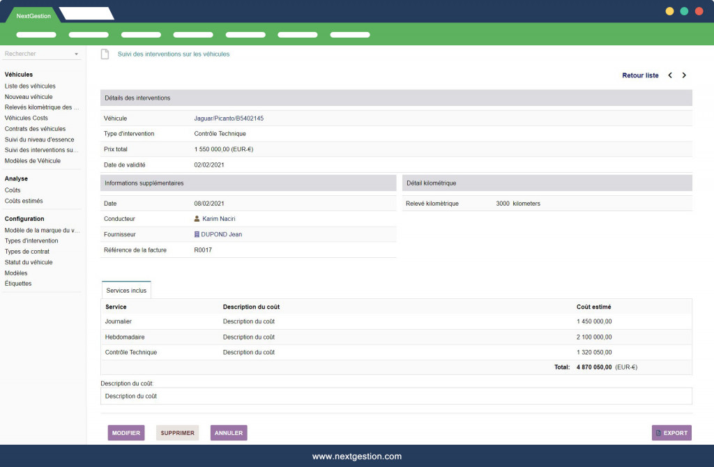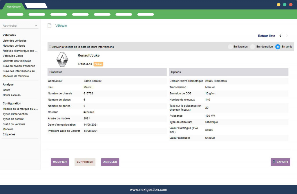 Gérez facilement votre parc automobile grace au Module parc auto, vous pouvez bénéficiez de l'ensemble des fonctionnalités suivantes: Gestion des véhicules Gestion des Contrats de location & assurances Suivi kilométrique Suivi de la consommation de carburant Suivi de l'Entretien Suivi des états et de la disponibilité Rapports et analyses Intégration avec les ventes.