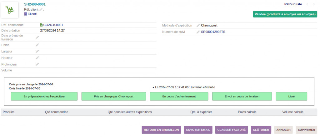 Track your parcels from the Dolibarr interface. A frame with parcel tracking details will be added to the shipment details pages for several French shipping services (Colissimo, Chronopost and Lettre suivie). This uses the free and official API from La Poste