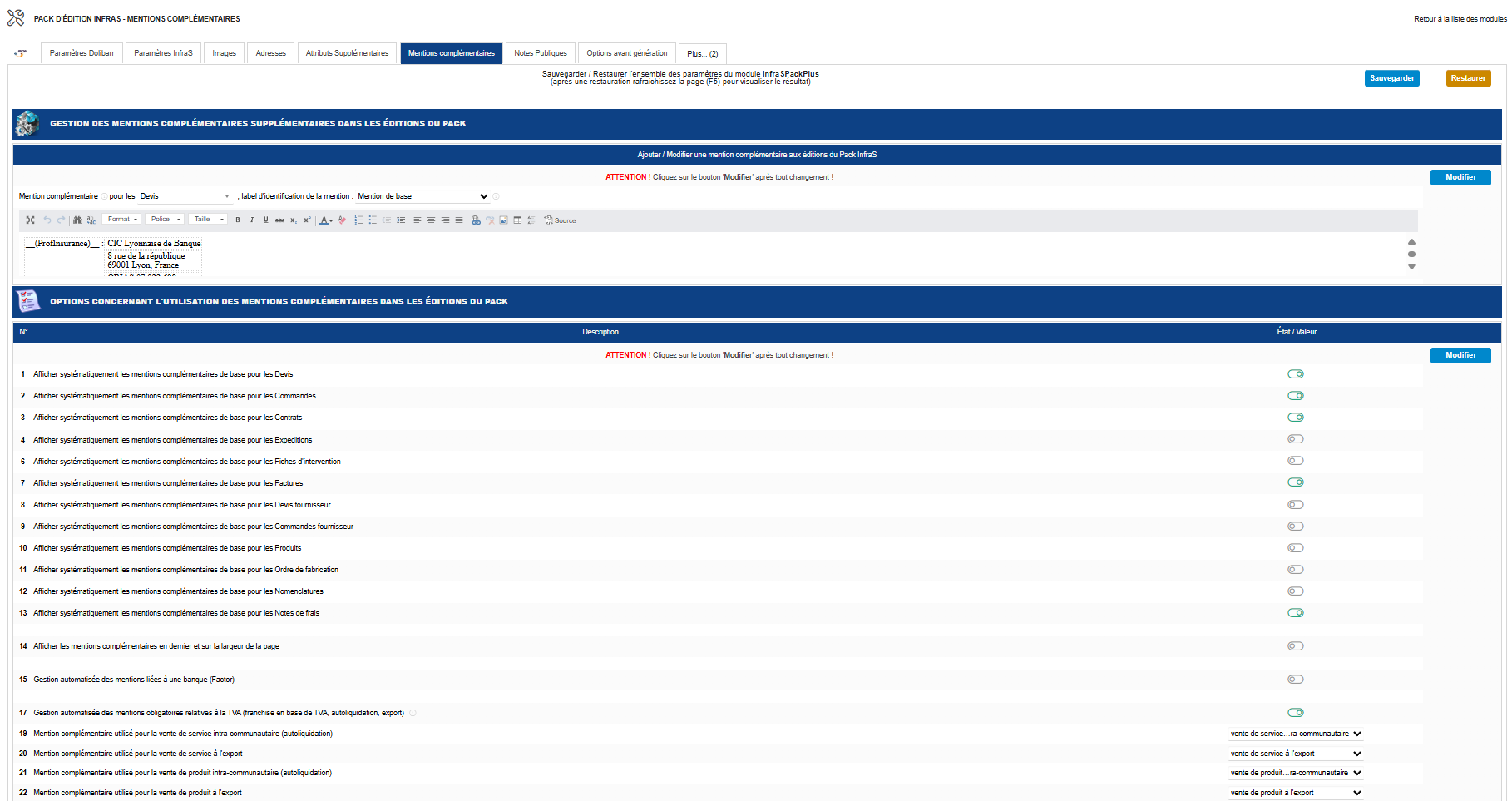 Le pack InfraS Plus apporte toute les avancées du pack de InfraS de base plus la gestion complète des Attributs supplémentaires, l'ajout des informations douanières pour lexport, le choix de la couleur du texte, et plus encore...