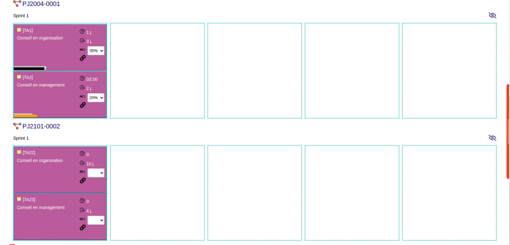 Save time in the task entry! Module adding a tab to a project card to manage tasks via a scrum board. Included features to update easily task progress (percentage, progress, etc.) !