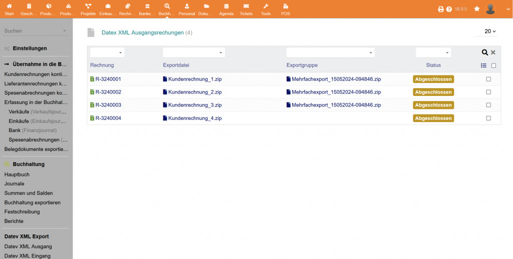 Mit dem Modul können Sie eine XML Datei mit allen für DATEV benötigten Buchungsdaten erstellen. Diese Datei kann dann in „Unternehmen Online“ von DATEV Importiert werden.