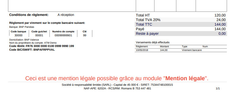 Add automatically a legal notice on your customer invoices, and define in advance the criteria of application.