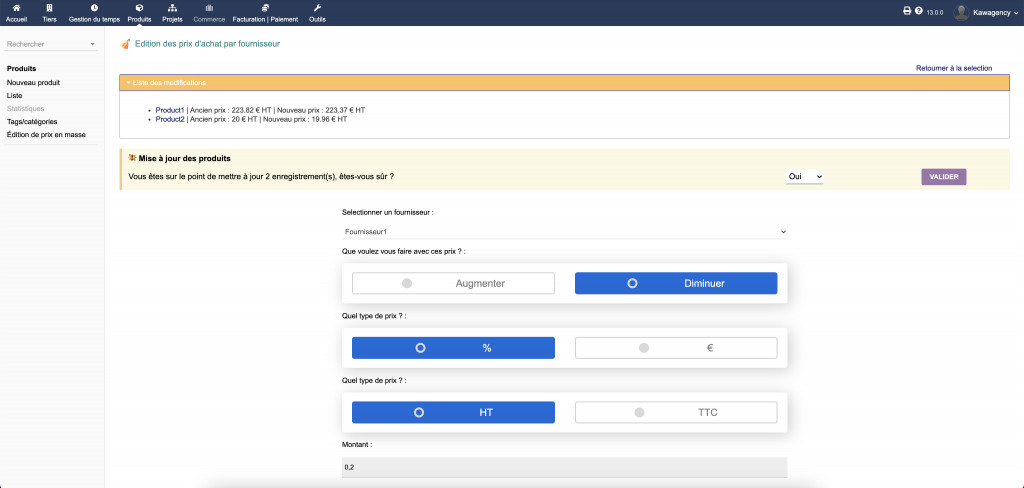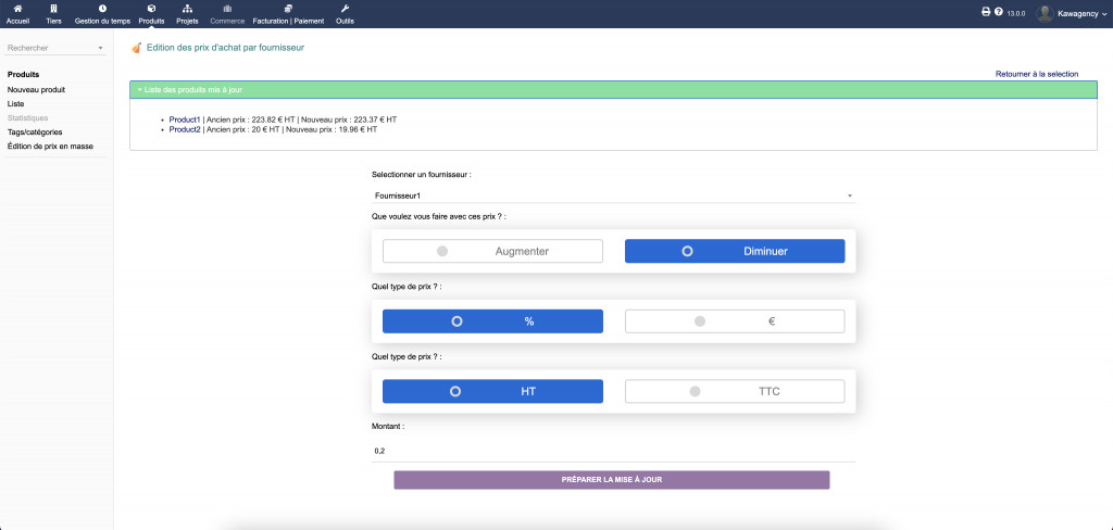 Need to edit a large number of prices simultaneously? This module (compatible with the multi-currency module and brand management) allows you to edit your buying and selling prices by category, supplier and product selection.