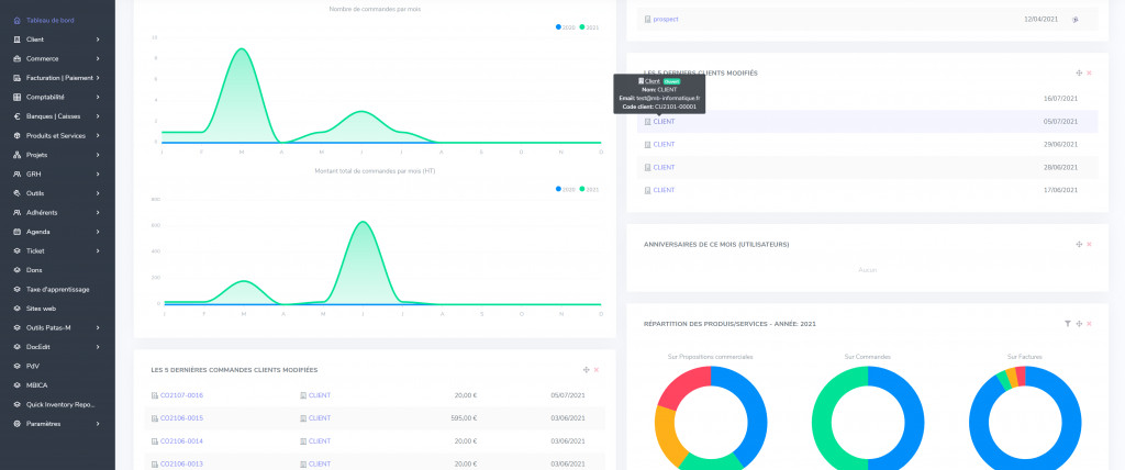 A modern theme for Dolibarr which adds different styles to the different elements of the pages (graphics, tables, icons) with a menu on the left side.