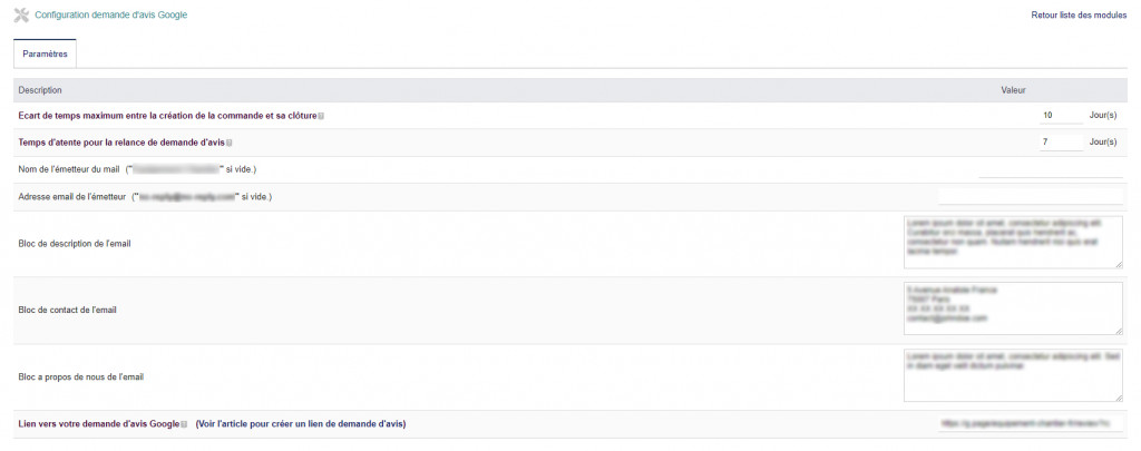 Le module de demande d’avis Google permet d’envoyer automatiquement aux clients une demande d’avis sur Google à la clôture de la commande.