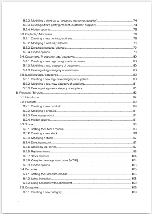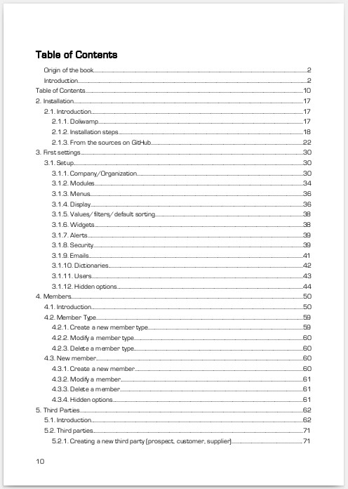 Guide Utilisateur & Administrateur pour Dolibarr ERP/CRM expliqué module par module, 15 chapitres sur 275 pages en version anglaise.