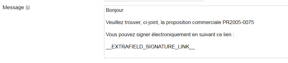- An online signature page whose link can be sent by email with the variable __EXTRAFIELD_SIGNATURE_LINK__