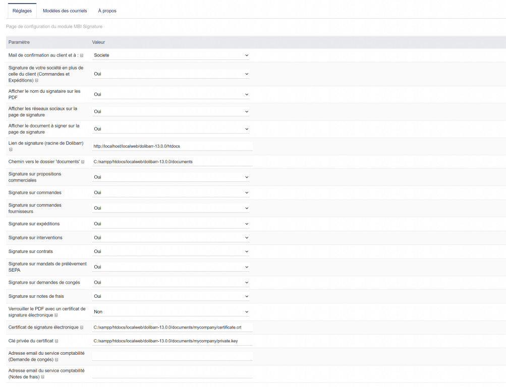 - Drop the folder ‘mbisignature’ in htdocs/custom or use the option ‘Deploy/install external app/module’ in the list of modules.