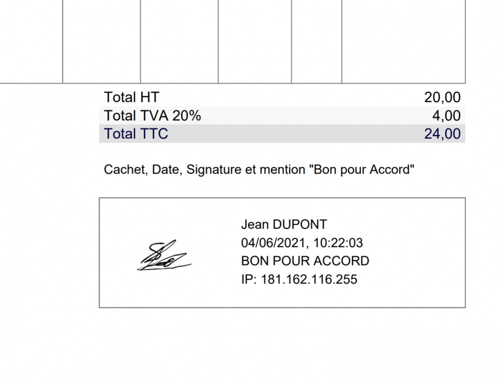 - Signature informations are stored in the Dolibarr database with IP address and date