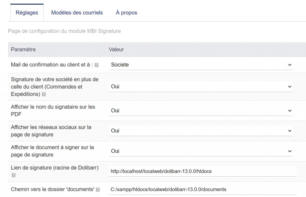 - Drop the folder ‘mbisignature’ in htdocs/custom or use the option ‘Deploy/install external app/module’ in the list of modules.