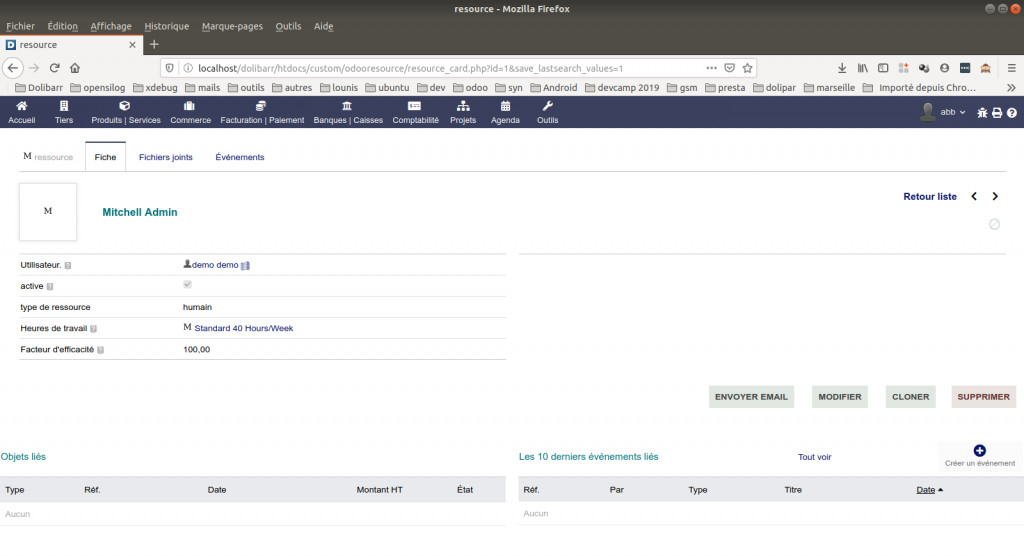 Ceci est le premier module Odoo porté vers Dolibarr. Un module porté est une réplique exacte du module d'origine avec juste les modifications nécessaires pour que celui-ci puisse tourner sur l'environnement but. Le module ressource a été porté de la version 12 de Odoo.