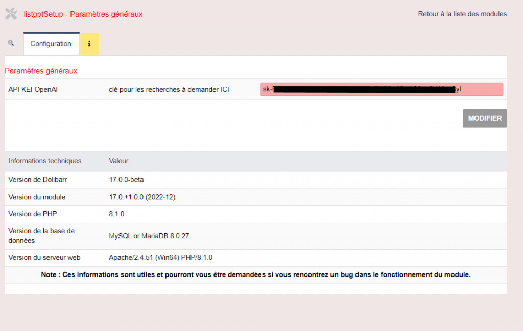 The module is administered via an interface dedicated platform where you simply enter the OpenAI API key to activate the features.