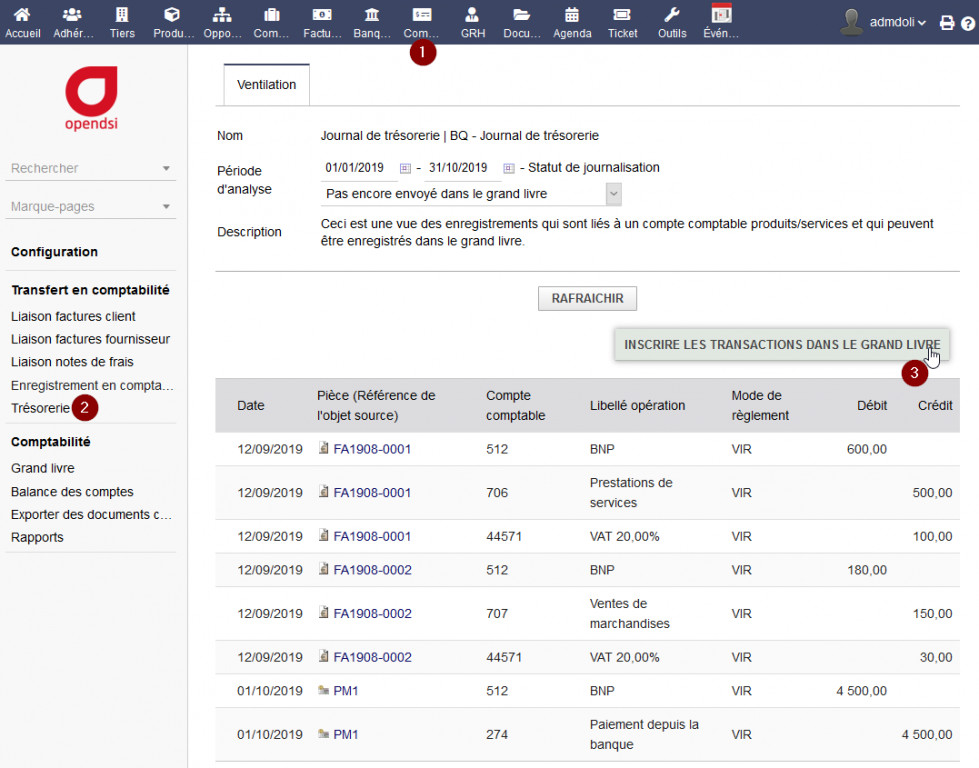 Dolibarr Cash Accounting add-on module allows the generation of cash accounting transactions on the basis of accrual accounting (partial use or not of the other modules). You are a company, an association and you meet the threshold for using cash accounting in conjunction with your accountant. So don't hesitate and make your life easier with a unified export to your accountant's software.