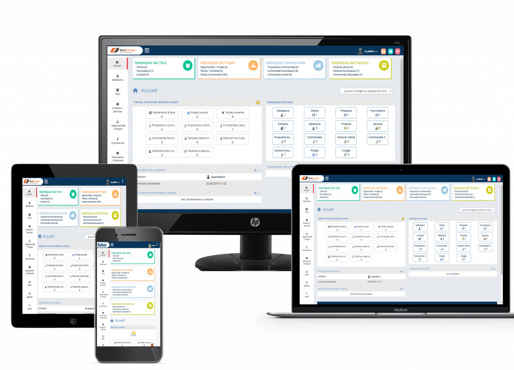 The new "BeCreative" theme, equipped with Responsive and Premium display, allows you to change Dolibarr style and colors completely, so the new option of horizontal menu orientation in vertical, it is suitable for all the computer devices of different sizes: PC desktop, Laptop, Smartphone, tablet and compatible with version 10. *